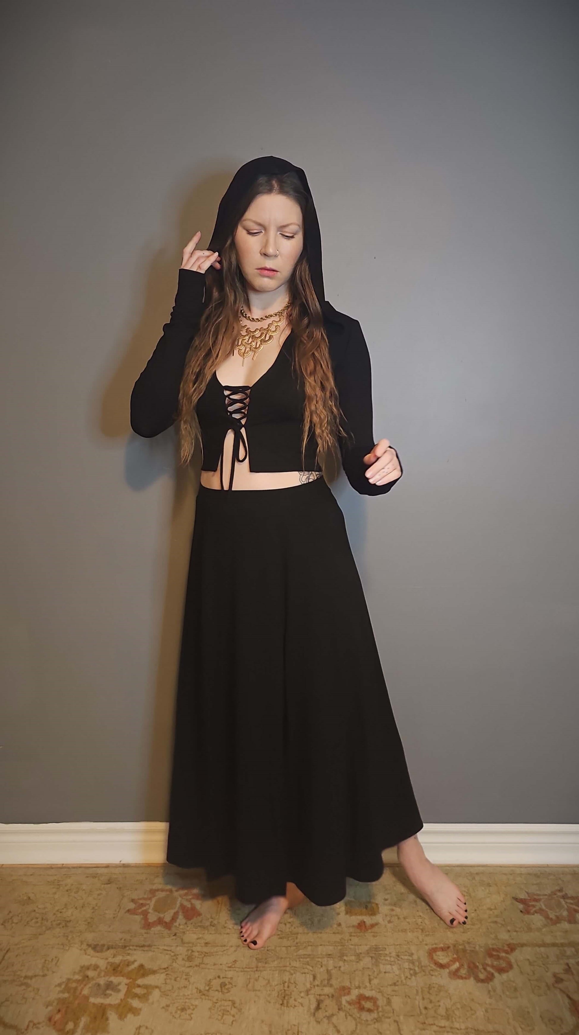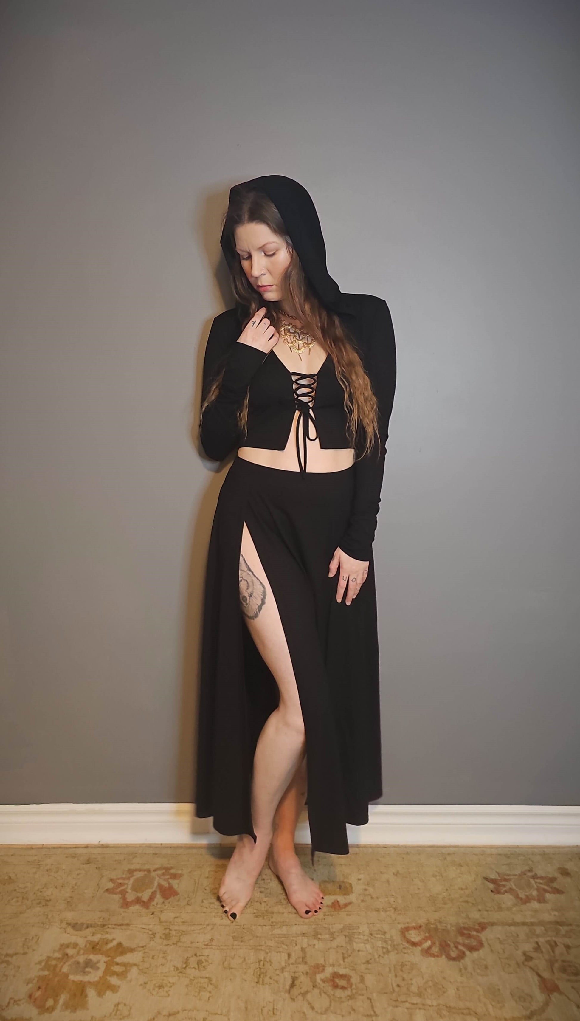 The Kali skirt is inspired by the Goddess Kali, the divine mother, destroyer of evil. Giving a feeling of power and control over ones self.