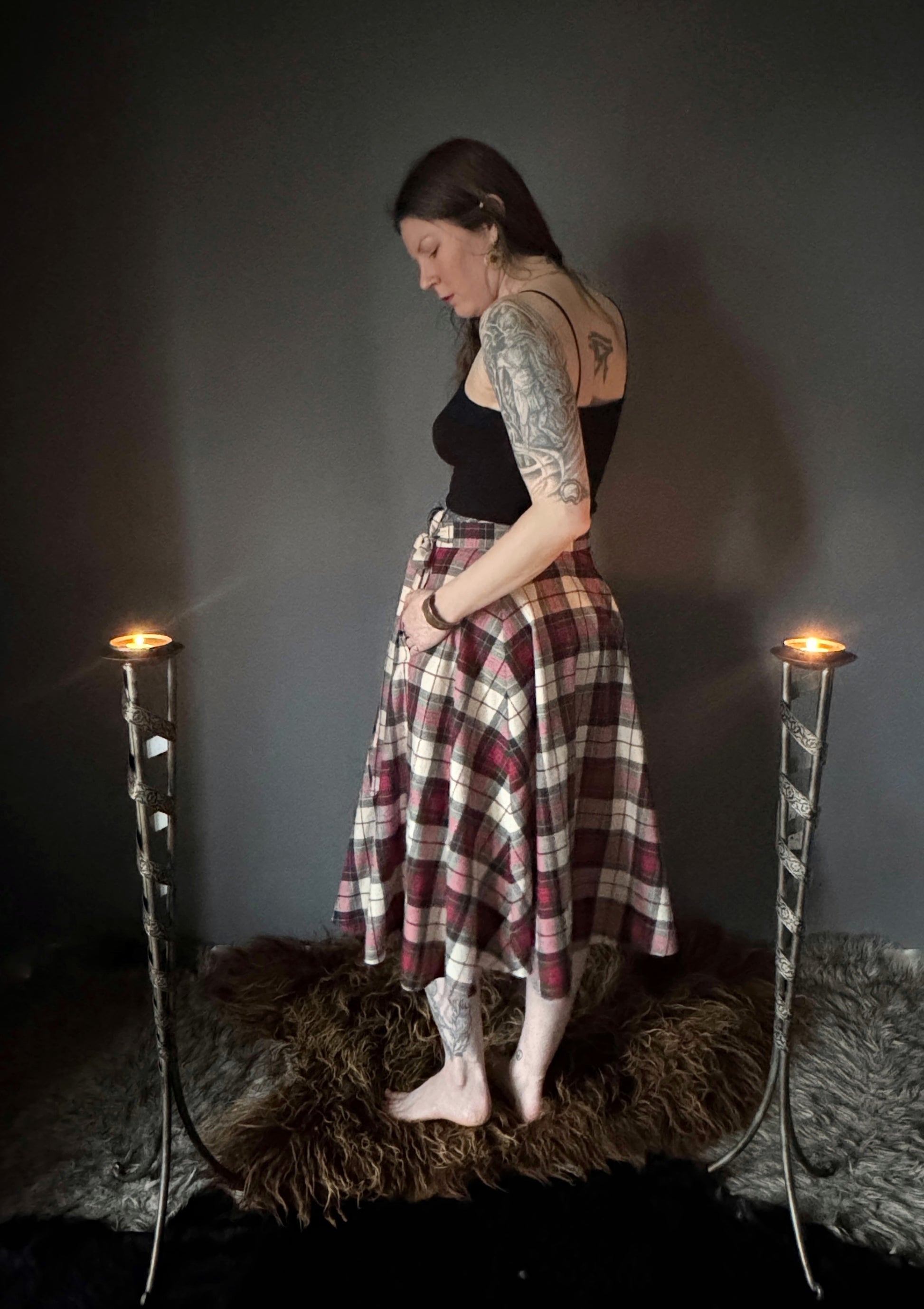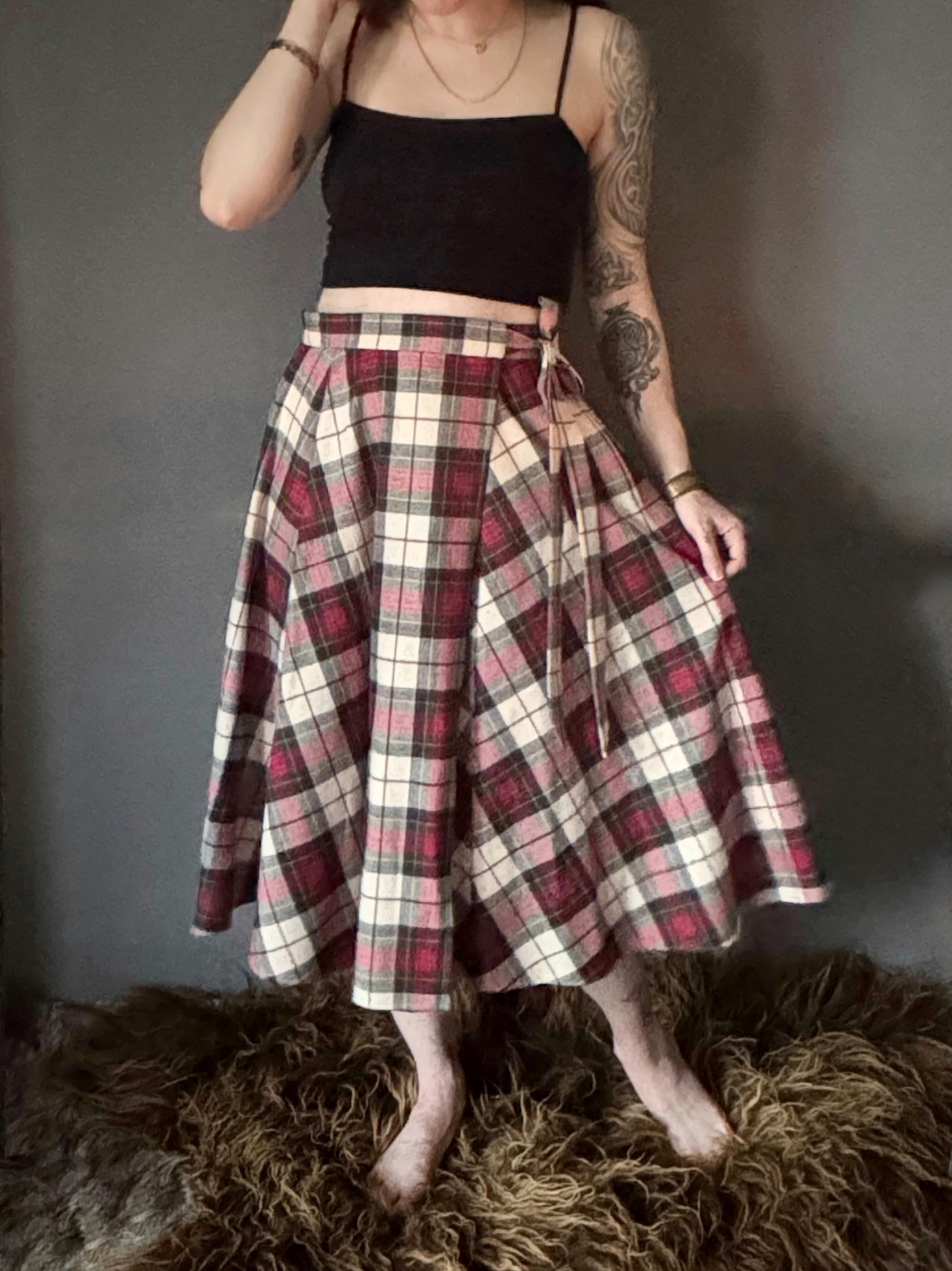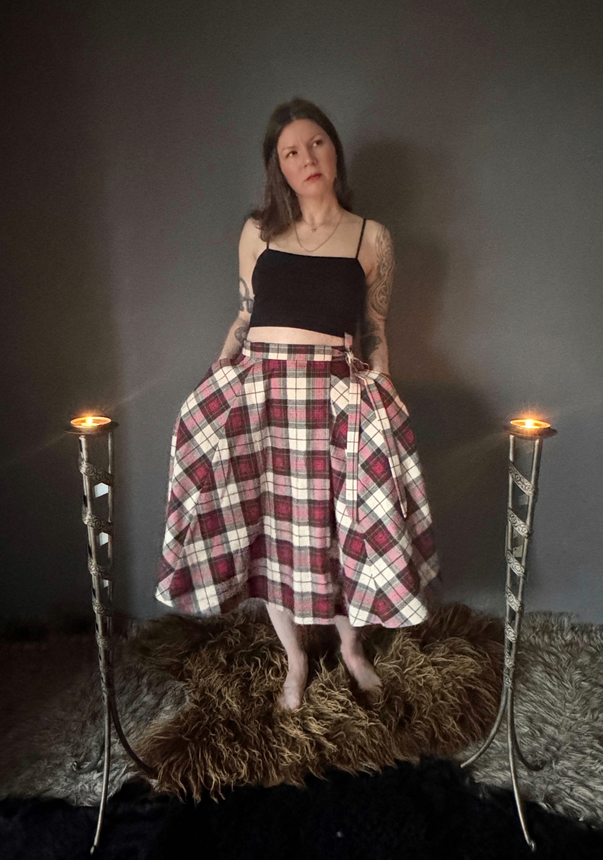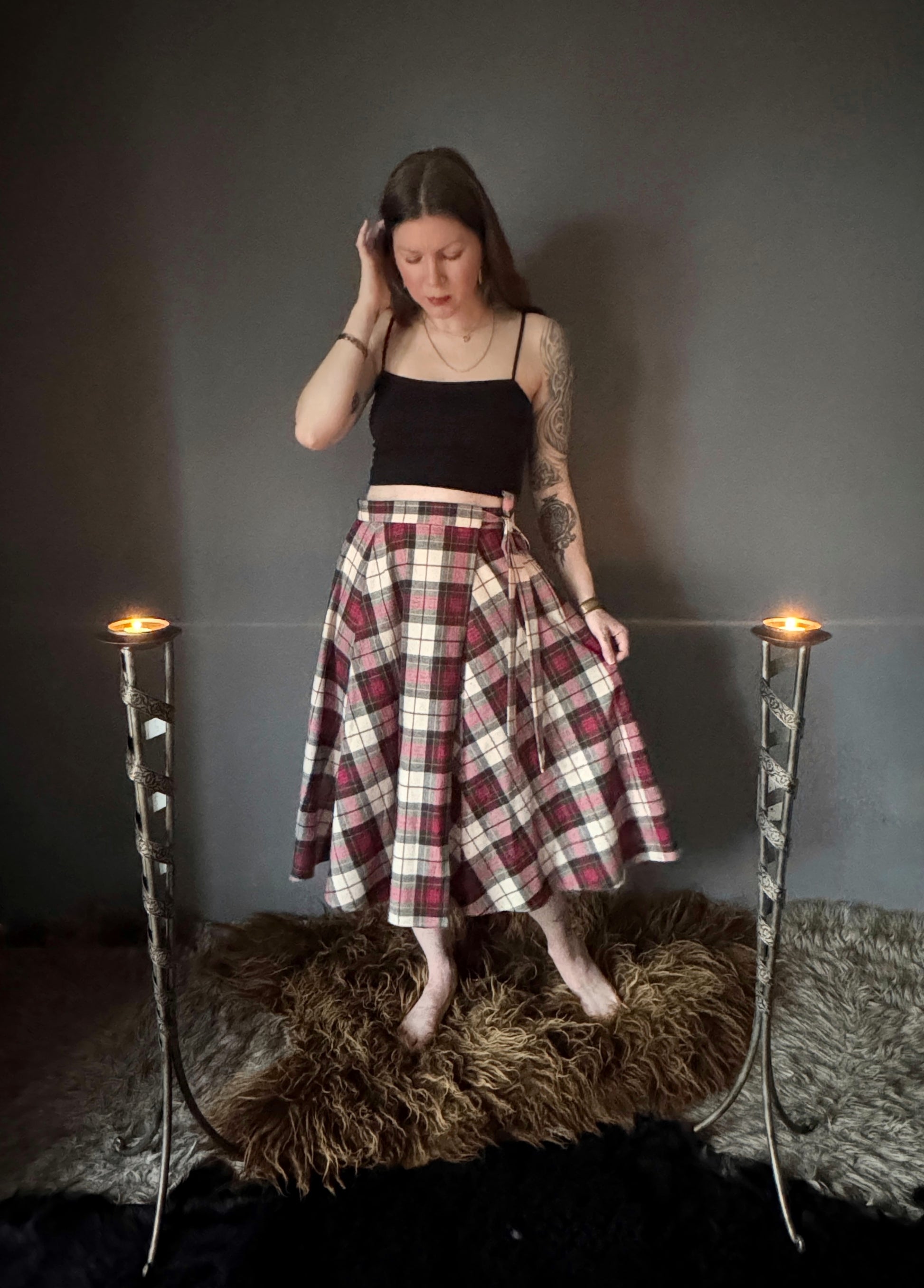 Our Tartan Wrap skirt is a versatile garment for all seasons. Made from a lightweight cotton, having very limited quantities available due to it being deadstock fashion fabric.